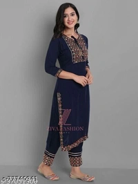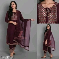 Kurta Fabric: Rayon Fabric: Rayon Bottomwear Fabric: Rayon Sleeve Length: Three-Quarter Sleeves Pattern: Solid Set Type: Kurta with Dupatta and Bottomwear Stitch Type: Stitched Multipack: Single Sizes: M, L (Bust Size: 40 m, Top Length Size: 45 m, Bottom Waist Size: 32 m, Bottom Length Size: 40 m, Dupatta Length Size: 2 m) XL, XXL Country of Origin: India