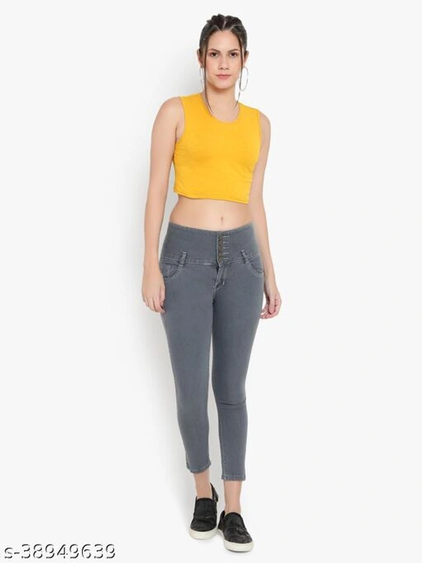 AKACY Women's Dark Blue Slim Fit 5 Button Stretchable Ankle Length Jeans
