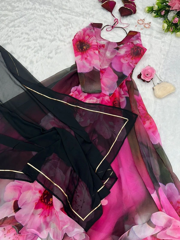 * Anarkali gown* - Digital printed Jimmy organza silk suit with 8mtr huge flair 🌸(am)