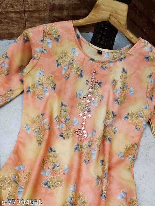 Product Name: *Designer Mirror Work Floral Printed Kurtis With Pant*