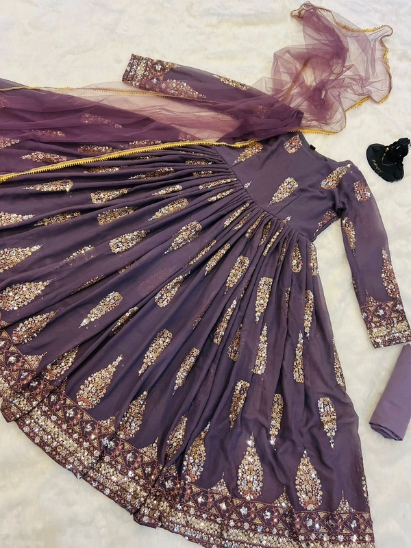👗*GOWN*👗*#GOWN FABRICS* : FOX GORGETTE WITH 3-5 MM DUBAL SIQUNCE EMBROIDERY WORK FULL STITCHED