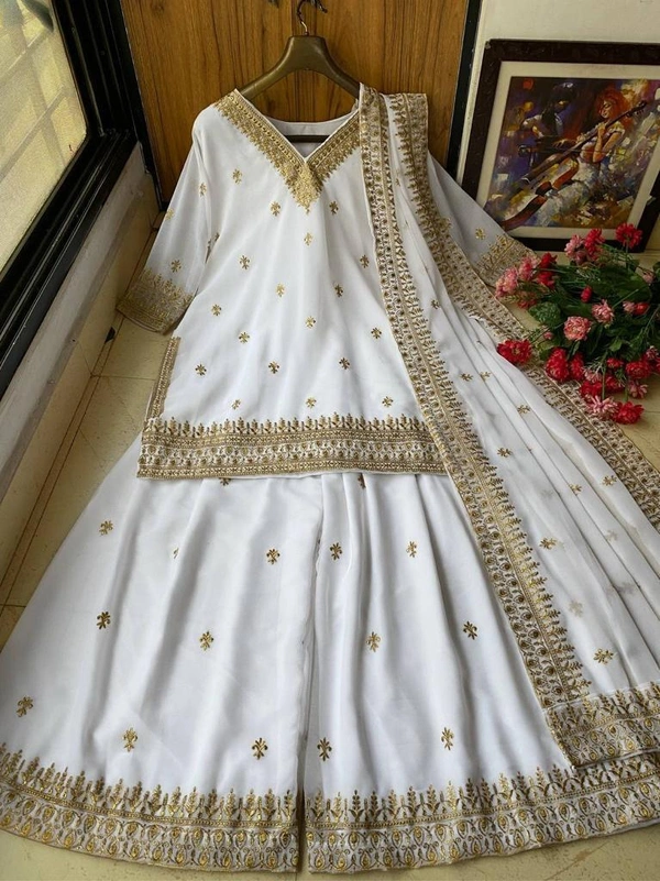 ♥️ GOOD QUALITY HEAVY GEORGETTE TOP WITH BEAUTIFUL FULLY EMBROIDERED & HEAVY GEORGETTE PLAZZO