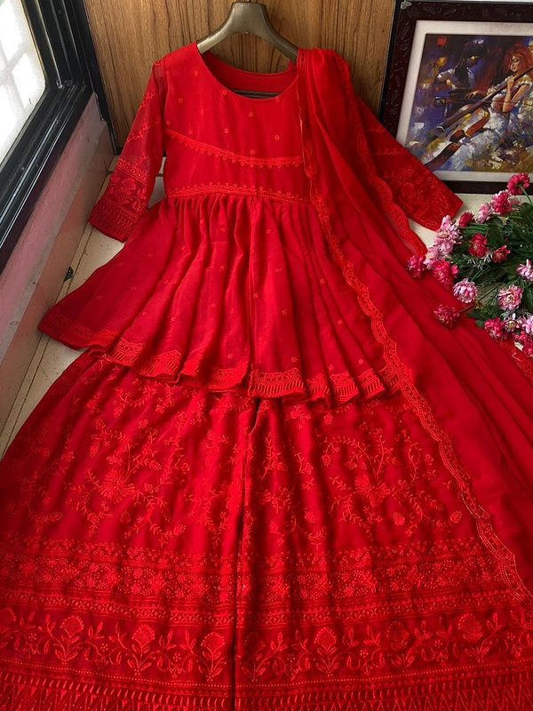 👉 PLAZZO : HEAVY GEORGETTE WITH *FULLY EMBROIDERY WORK* *(FULLY STITCHED)*