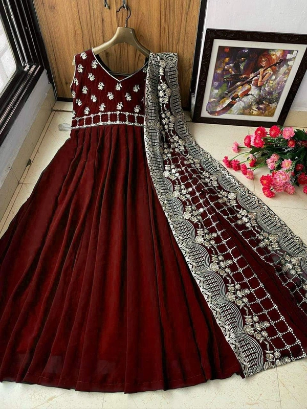 LC -422 ♥️ PRESENTING NEW DESIGNER EMBROIDERED ANARKALI GOWN ♥️♥️ GOOD QUALITY EMBROIDERED GEORGETTE OUTFIT(AM)