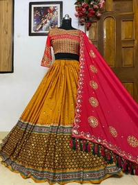 # LEHENGA : HEAVY BUTTER SILK WITH DIGITAL PRINT & * 4 MTR FLAIR FULLY STITCH * WITH *REAL MIRROR WORK
