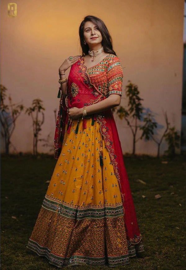 # FREE SIZE FULLY STITCHED LAHENGA WITH UN STITCH 1.20 MTR BLOUSE ; LAHENGA LENGTH IS 44 INCHES ;