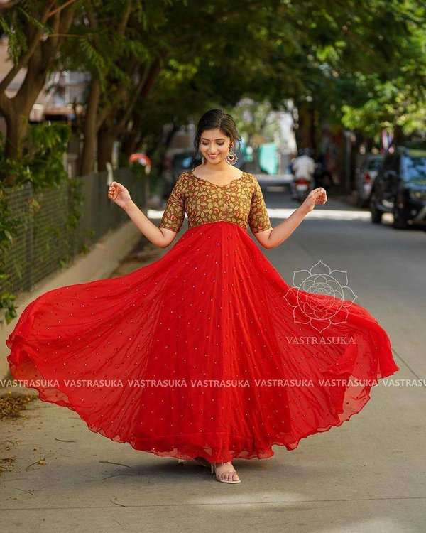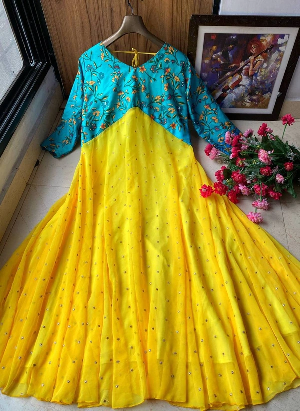 👉 GOWN :HEAVY GEORGETTE WITH EMBROIDERY(FULLY STITCHED) *7 MTR UMBRELLA FLAIR*