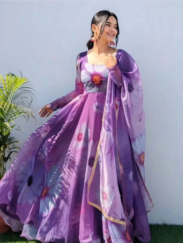 New Party Wear Look Organza Taby Silk Gown With Dupatta