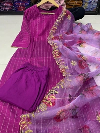 *NEW LUNCHING π**Sequin Detailed Kurta With**Pants & Floral Printed Embroidered Hand work Beutiful Organza Dupatta Set(am)