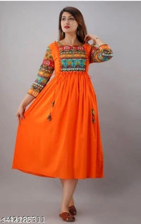 Fabric: Rayon Sleeve Length: Three-Quarter Sleeves Pattern: Printed Combo of: Single Sizes: XL (Bust Size: 42 in, Size Length: 46 in) L (Bust Size: 40 in, Size Length: 46 in) M (Bust Size: 38 in, Size Length: 46 in) XXL (Bust Size: 44 in, Size Length: 46 in) XXXL (Bust Size: 46 in, Size Length: 46 in) S (Bust Size: 36 in, Size Length: 46 in) 4XL (Bust Size: 48 in, Size Length: 46 in) Printed Rayon Long Anarkali Kurti Country of Origin: India