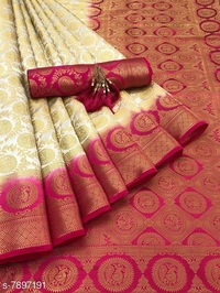 Saree Fabric: Silk Blend Blouse: Running Blouse Blouse Fabric: Kanjeevaram Silk Pattern: Zari Woven Blouse Pattern: Same as Saree Multipack: Single Sizes: Free Size (Saree Length Size: 5.5 m Blouse Length Size: 0.8 m) Country of Origin: India