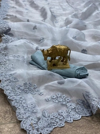 ❤️ TRADITIONAL *ORGANZA SAREE* WITH *EMBRODERY C PALLU* WORK WITH *MOTI* WITH MATCHING COLOUR *BANGLORI SILK PLAIN BLOUSE*