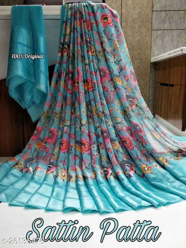 Saree Fabric: Satin Blouse: Running Blouse Blouse Fabric: Georgette Pattern: Printed Blouse Pattern: Printed Multipack: Single Trendy Georgette And Satin Printed Women's Sarees With Blouse Sizes: Free Size (Saree Length Size: 5.5 m, Blouse Length Size: 0.8 m) Country of Origin: India